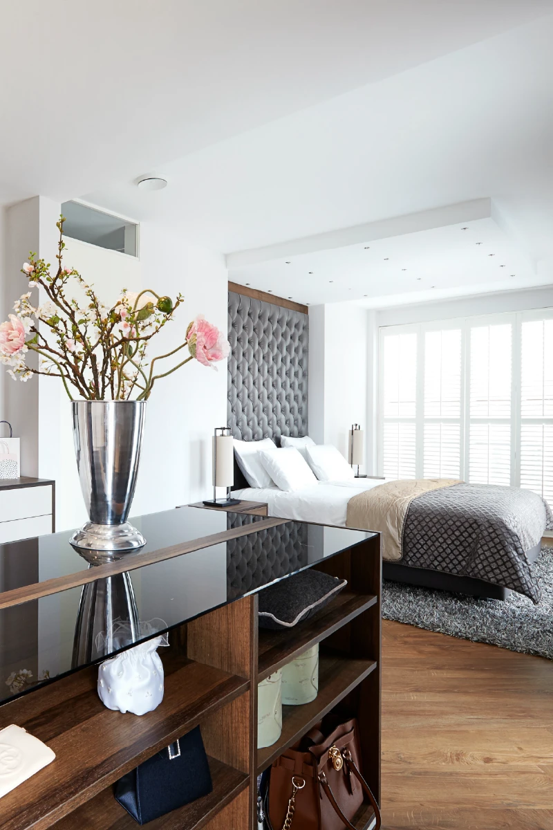 Bekijk hoe een inloopkast op verschillende manieren onderdeel kan zijn van de slaapkamer.