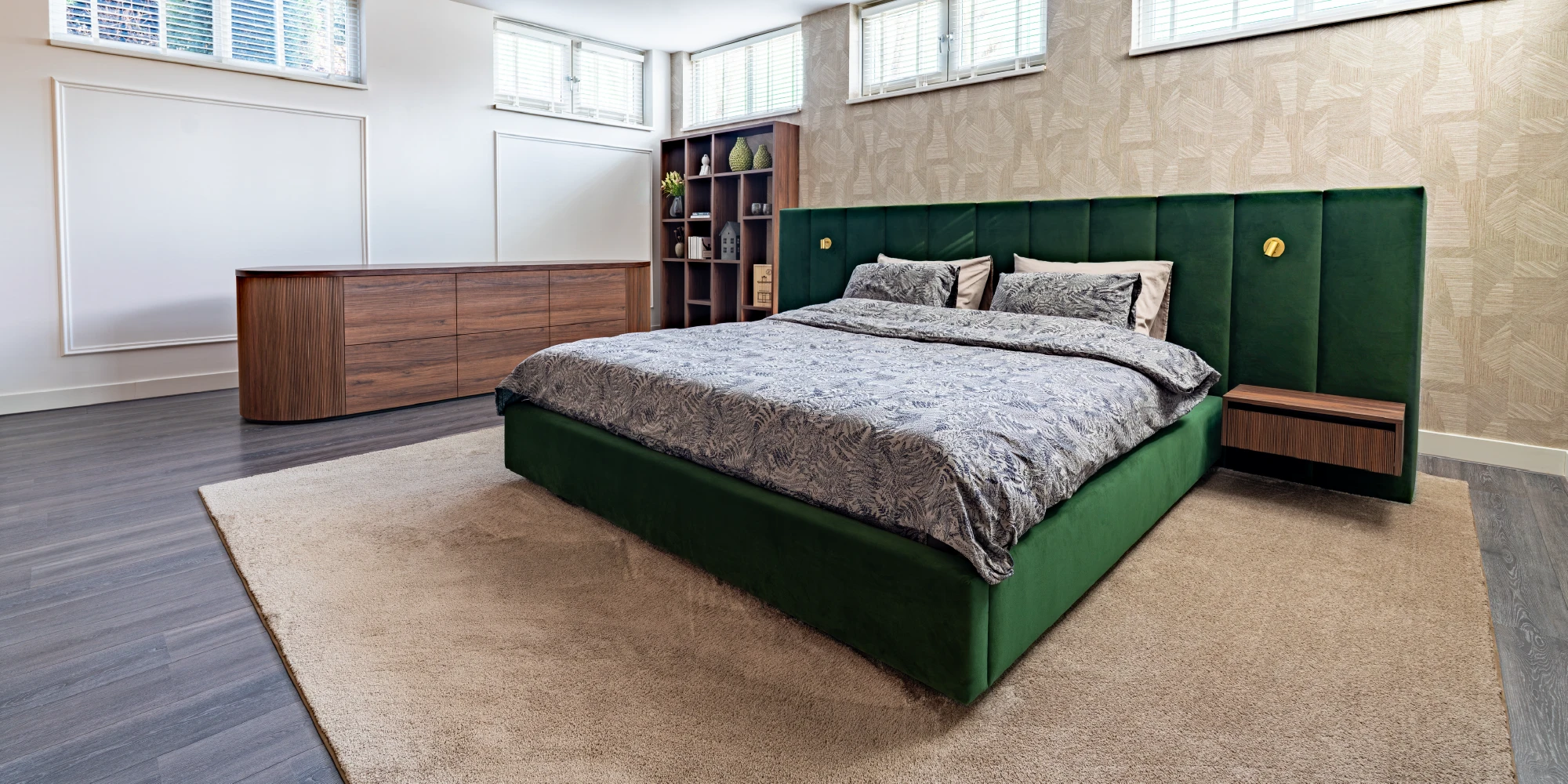 Bekijk verschillende bedden en hoofdborden en zie hoe ze de uitstraling en indeling van de slaapkamer beïnvloeden.